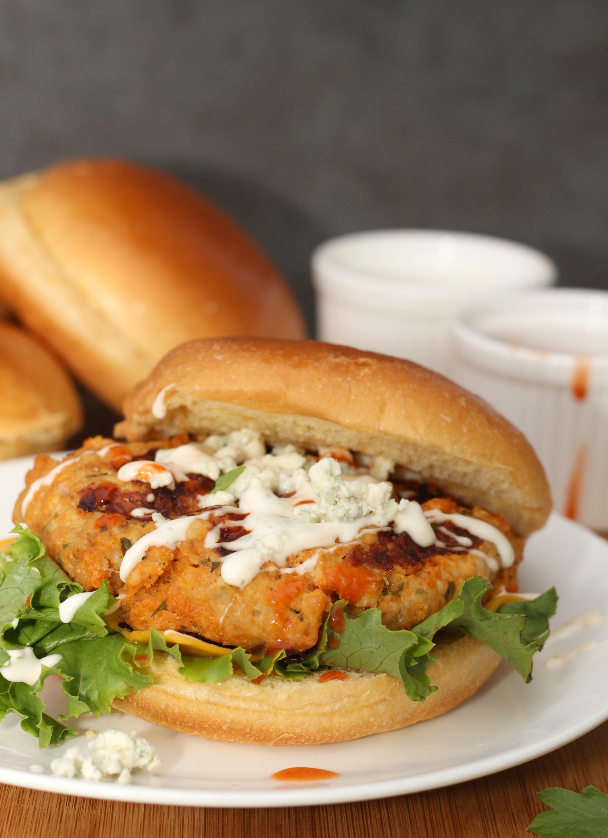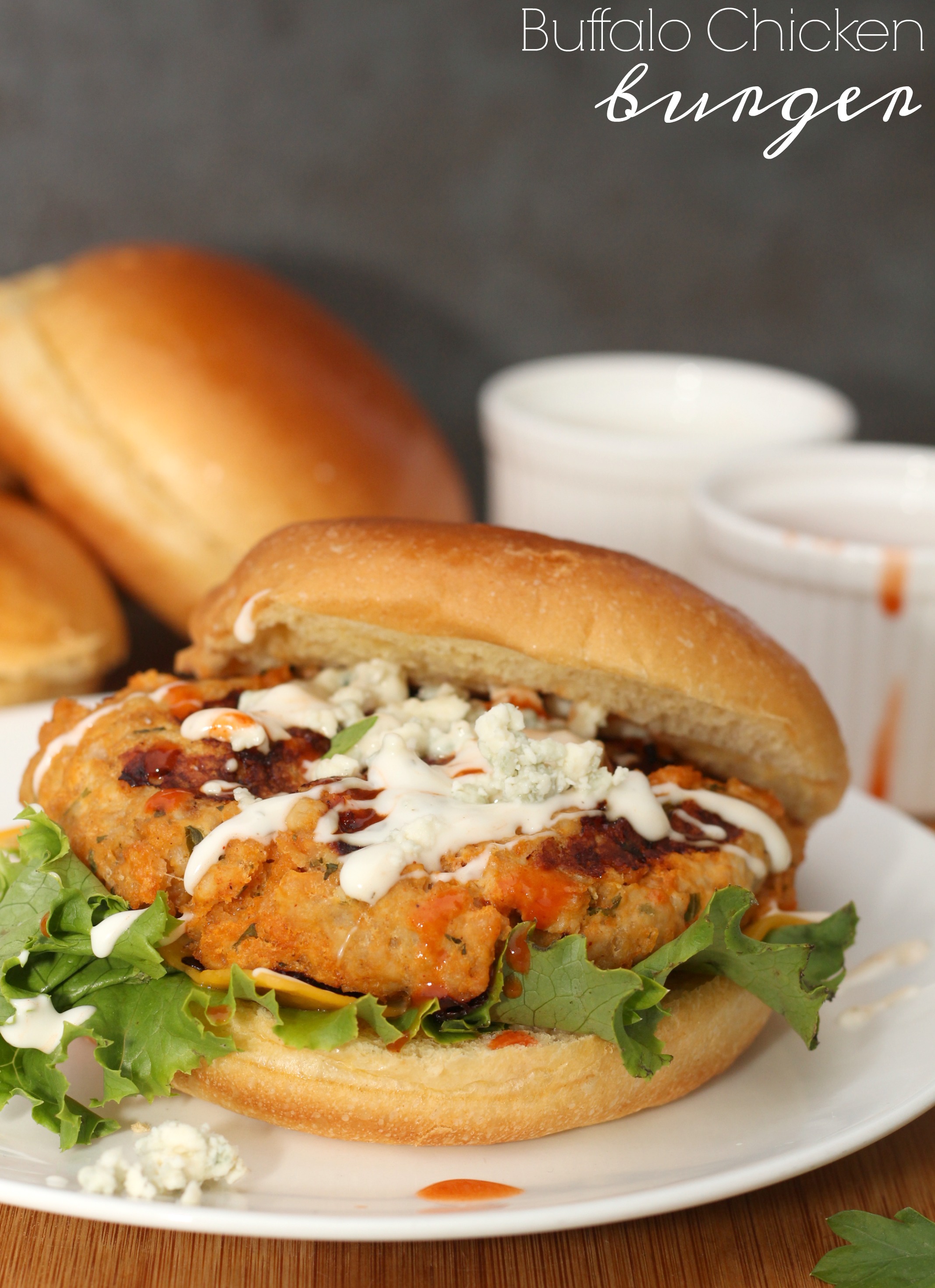 My love for buffalo chicken runs deep. Whether it’s wings, buffalo chicken dip or my current favorite buffalo chicken burgers, I could eat the stuff all day long. I’ve always loved spicy foods so the heat is never an issue and for me sometimes the hotter, the better. These burgers have just the right amount of kick to them but the blue cheese and creamy ranch dressing are the perfect toppings to cool it down a bit.