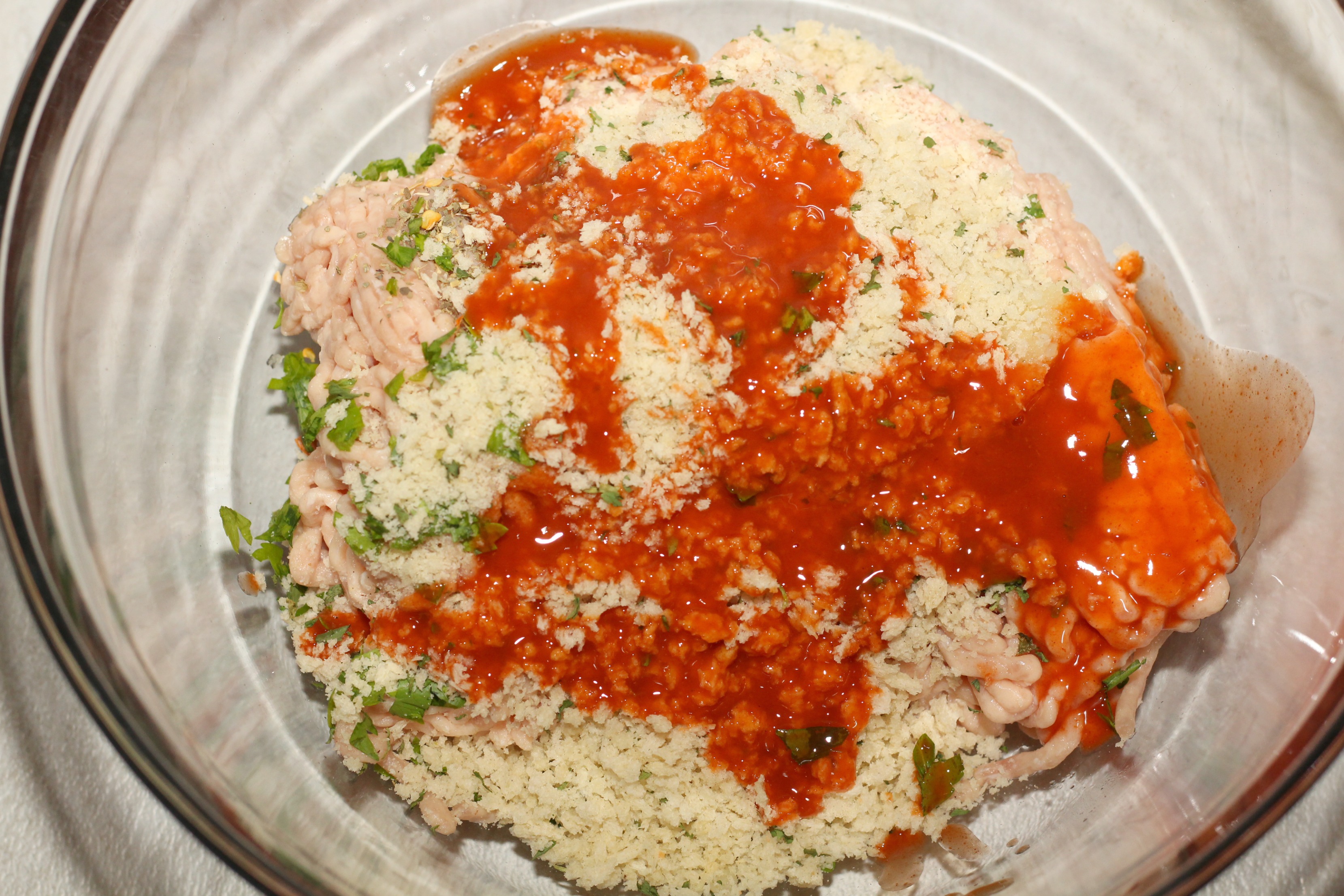 The ingredient list is pretty simple too, just some ground chicken, buffalo wing sauce, garlic and some panko breadcrumbs.