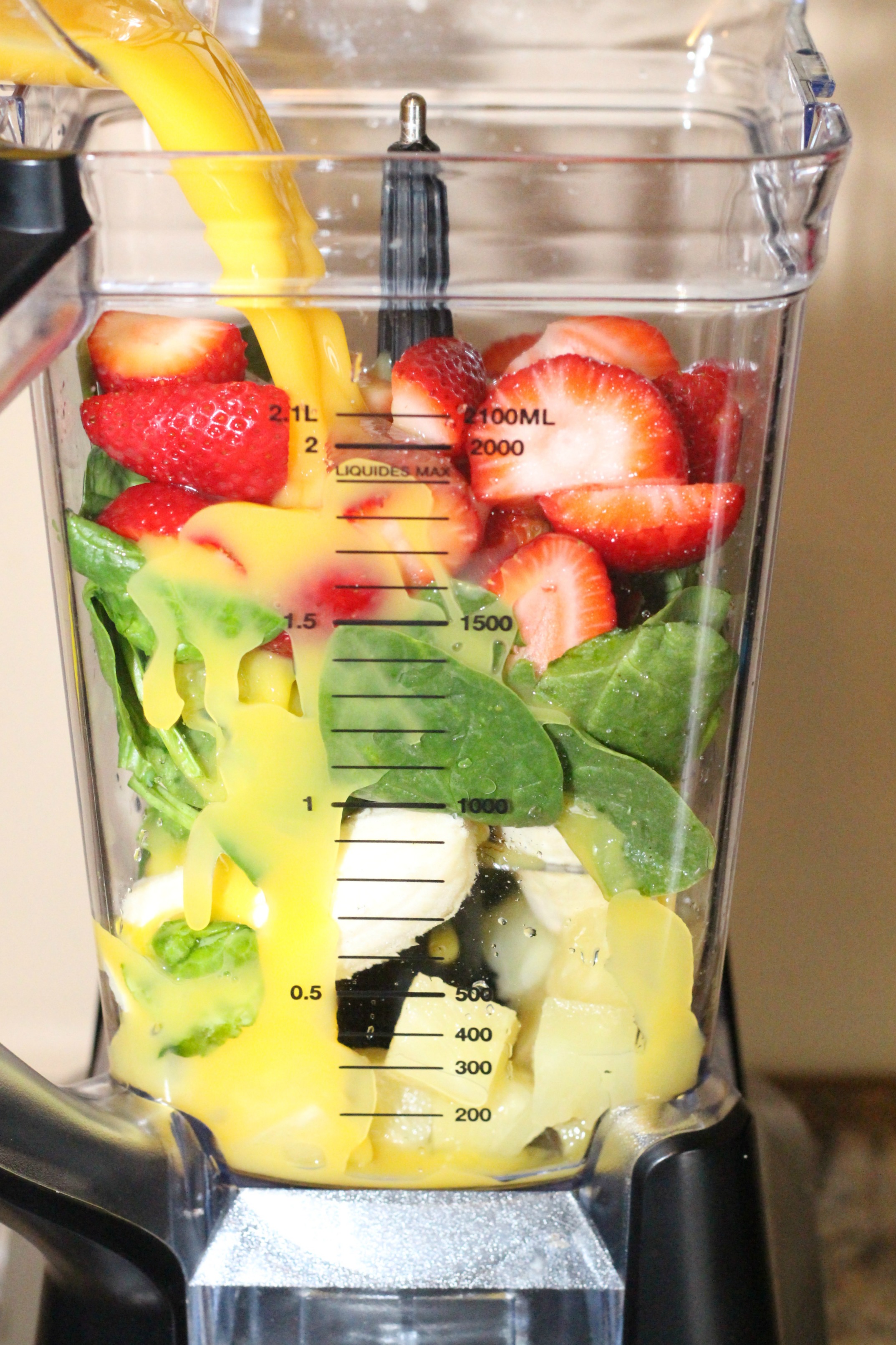 Some days we’ll use orange juice like in this recipe and sometimes I’ll swap it out for almond milk, if it’s just me drinking it. There’s really no wrong way to make them.