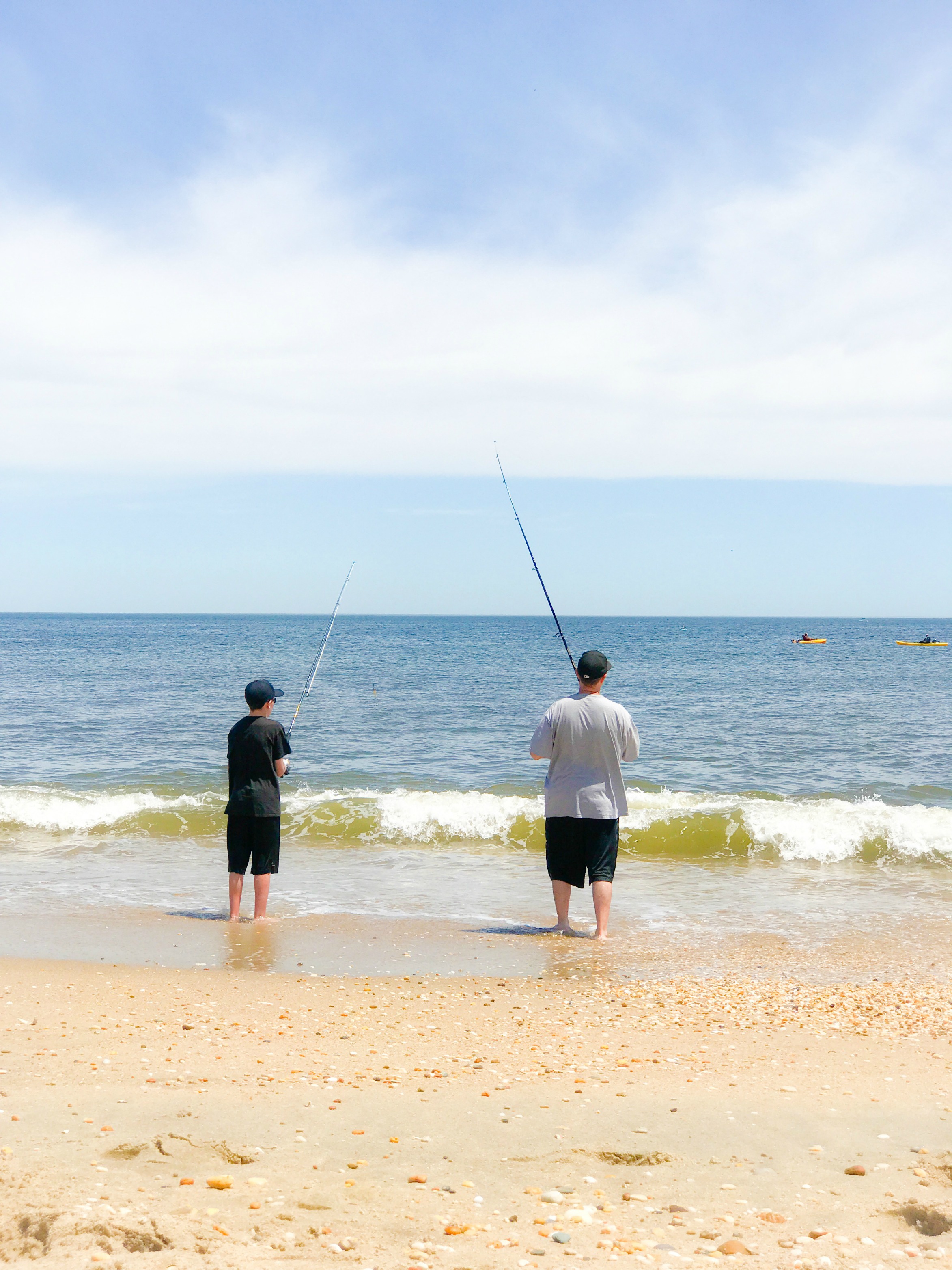 She has just as much fun as he does out there. While she’s a little too small for surf fishing, she has plenty of fun on the beach digging in the sand or splashing in the water. She prefers to inspect the bluefish and stripers they catch.
